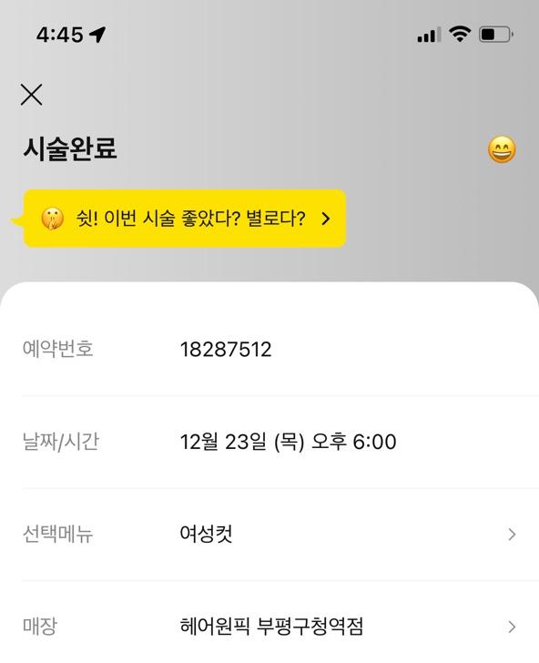 시술해준 미용사분이 설명도 잘 해주면서 커트 진행해주셨어요.